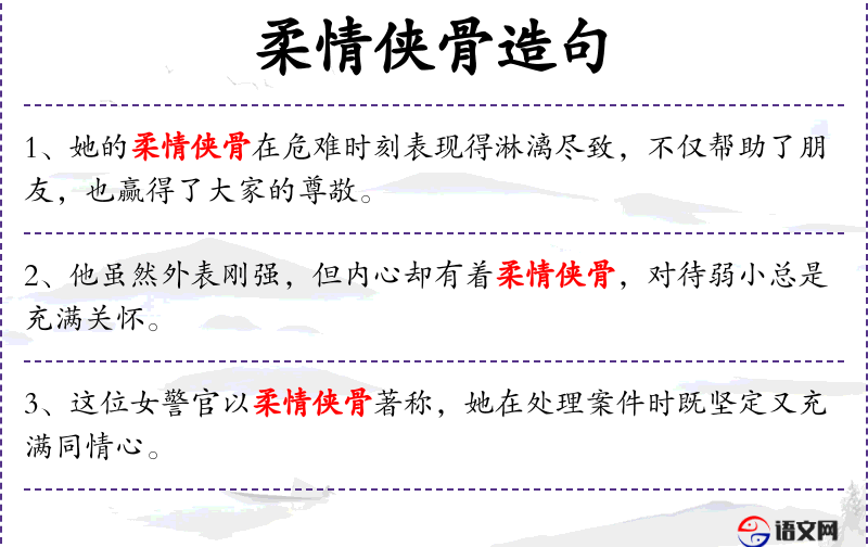 7. 【柔情侠骨】 温柔的情态,侠义的性格。
