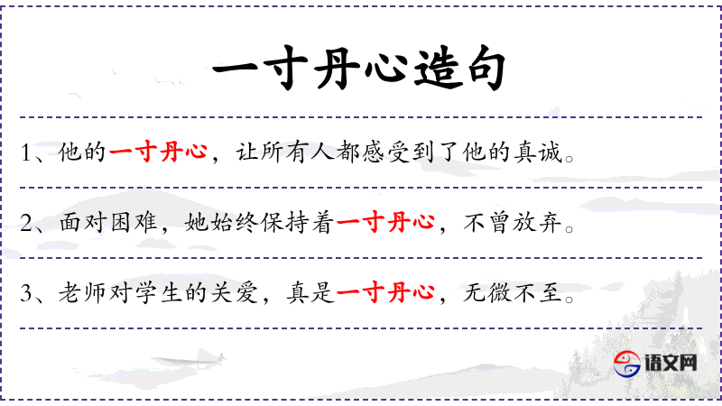 1. 【一寸丹心】 - 丹心:赤心,忠贞的心。一片赤诚的心。
