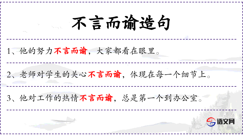 - 不言而喻:不需要说出来就能明白的意思。
