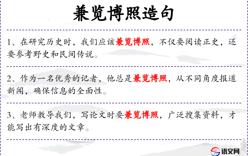 - 宾语:兼览博照,综合各方意见,做出最佳决策