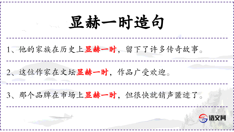 2. 【显赫一时】 - 显赫:有名声有权势地位的。在一个短时期内名声权势极大。