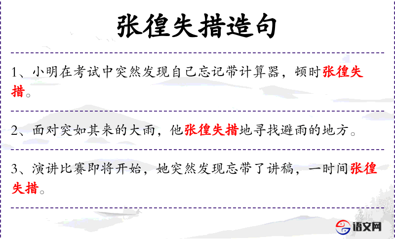 - 张徨失措:形容词短语,表示感到慌乱和不知所措。