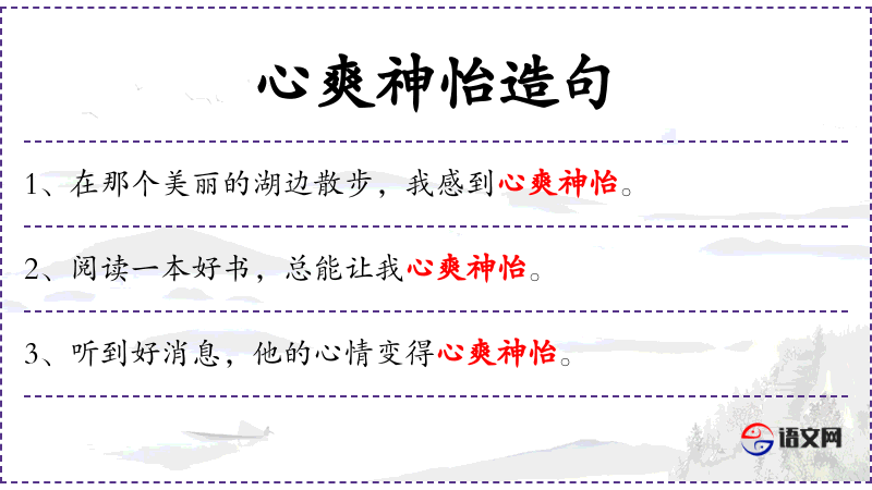 - 心爽神怡:形容心情舒畅,精神愉悦。