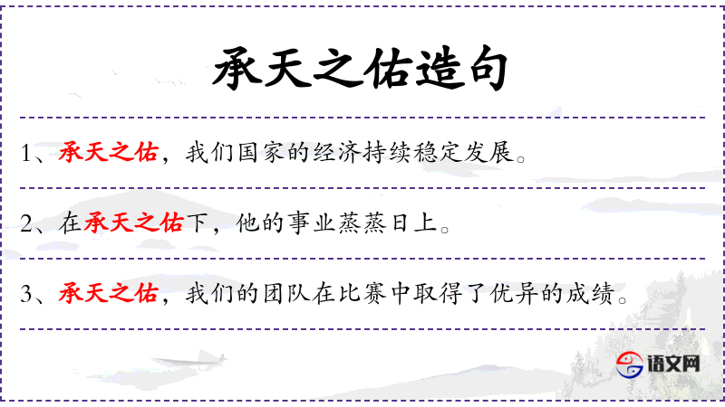 句子:“在承天之佑的光辉下,我们的社区和谐安宁。”