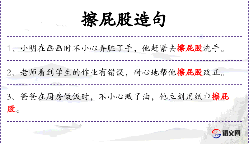 - 礼貌用语:句子中的“擦屁股”可能被认为是不礼貌的表达,因此在正式或礼貌的交流中应避免使用。