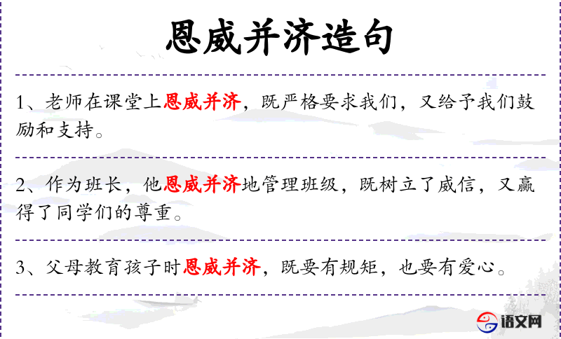 - 恩威并济:同时使用恩惠和威严来管理或教育。