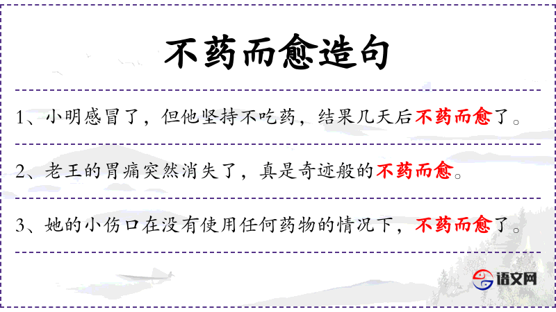 1. 【不药而愈】 - 生病不用吃药而自行痊愈。
