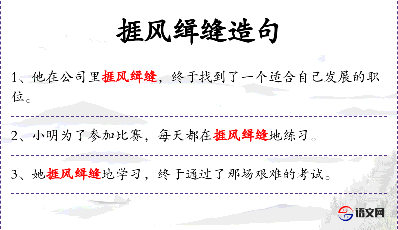 - 捱风缉缝:这是一个成语,形容工作非常辛苦、细致。