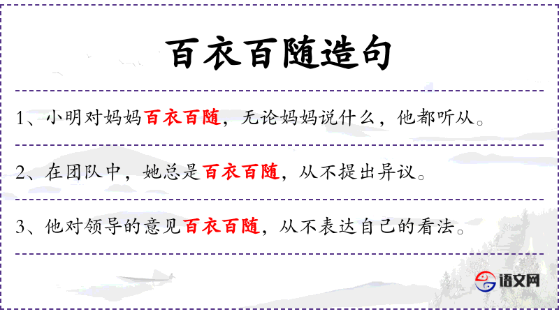2. 【百衣百随】 - 什么都依从。形容一切都顺从别人。