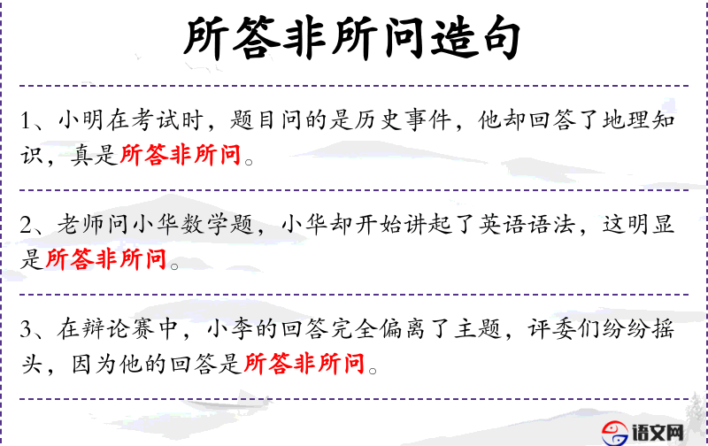 “所答非所问”是一个常见的成语,用来形容回答与问题不相关。这个成语在**文化中广泛使用,反映了对于直接和相关回答的期望。