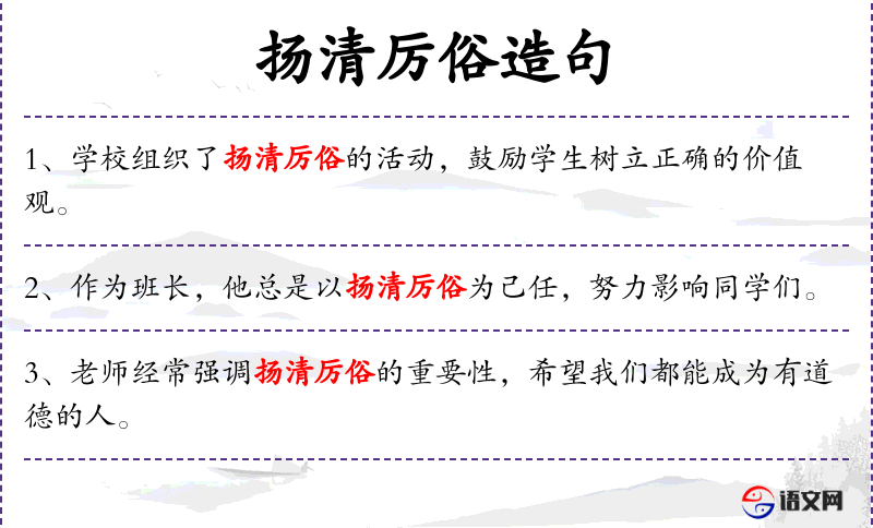 - 扬清厉俗:提倡清廉,反对不良风俗。