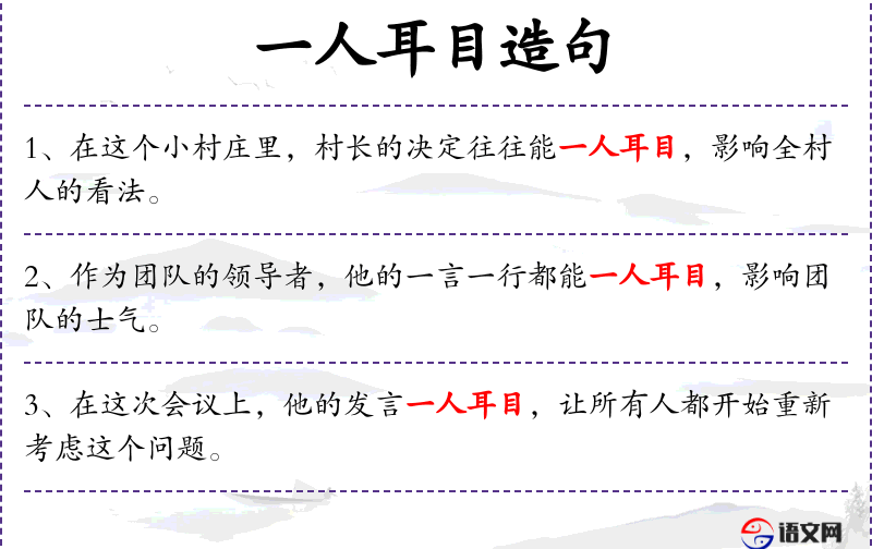1. 【一人耳目】 一:统一。统一人们的视听,便于指挥。