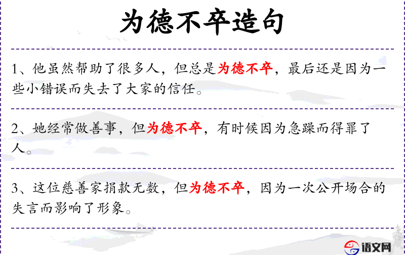 - 为德不卒:成语,意为做事有始无终,未能坚持到底。
