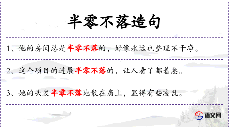 - 半零不落:零散、杂乱。