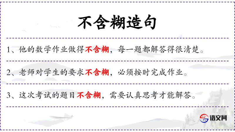 1. 【不含糊】 - 谓不含混其事; 好,不错。