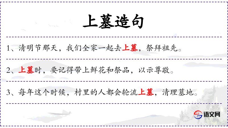 3. 【墓碑】 - 立在坟墓前面或后面的、上面刻载死者姓名、经历事迹等文字的碑。