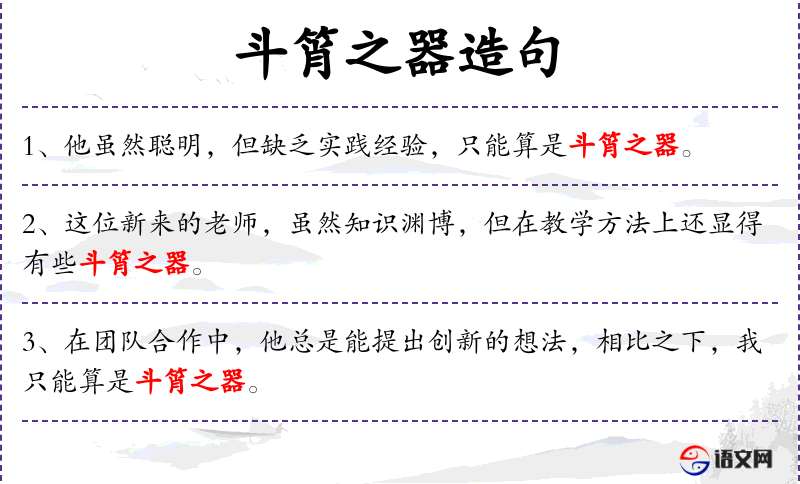 - 斗筲之器:这个成语源自**古代,用来形容人的才能有限,只能做些小事。这反映了中华文化中对才能和能力的评价标准。