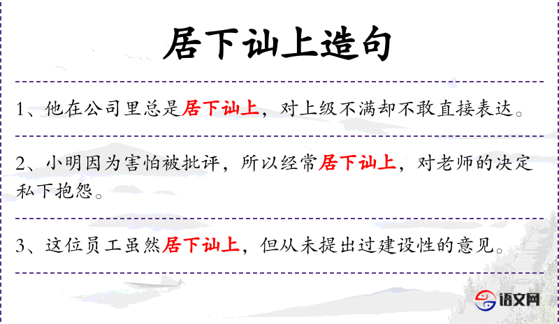 - 居下讪上:这个词组可能指的是在会议中处于较低的地位,但仍然对上级进行讽刺或批评。