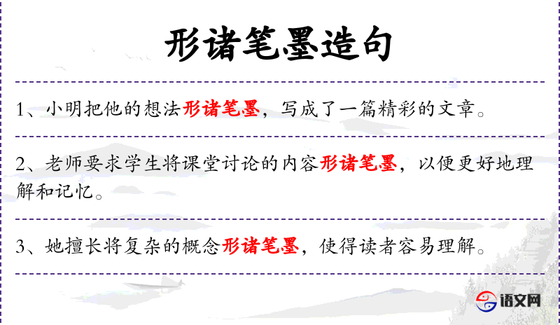 3. 宾语:将他们的创意形诸笔墨,参加学校的写作比赛