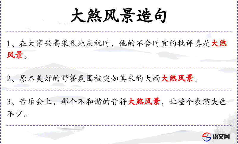 - 大煞风景:成语,表示破坏了美好的氛围。