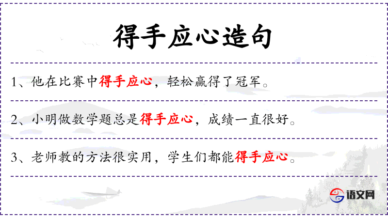 - 得手应心:形容做事得心应手,非常熟练。