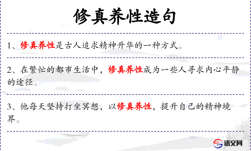 - 修真养性:指通过修炼心灵和身体来提升自我,常用于道教或修真小说中。