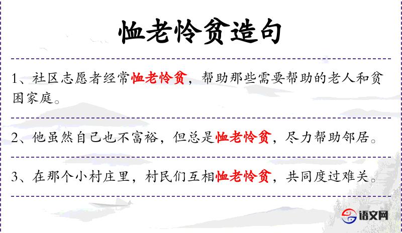 - 恤老怜贫:关心和帮助老人和贫困者。