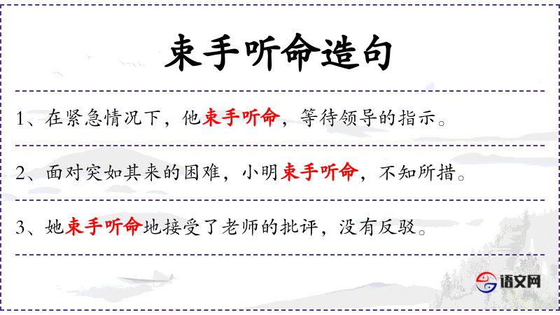 3. 【束手听命】 - 拱手听从命令。