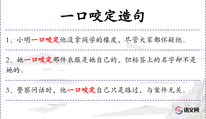 1. 【一口咬定】 - 一口咬住不放。比喻坚持一个廉洁,再不改口。
