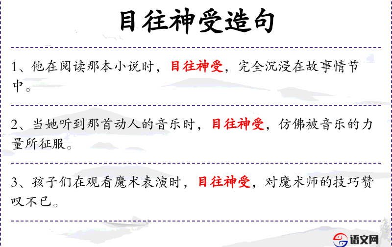 7. 【目往神受】 - 往:过;受:感受。看一眼便心领神会。形容人机智灵敏。