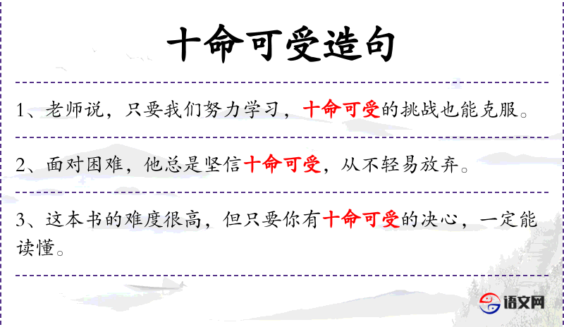 句子:“[这本书的难度很高,但只要你有十命可受的决心,一定能读懂。]”