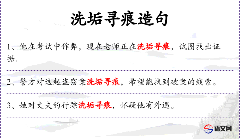 4. 【洗垢寻痕】 垢:污垢;痕:痕迹。洗掉污垢来寻找痕迹。比喻想尽办法挑剔别人的缺点。