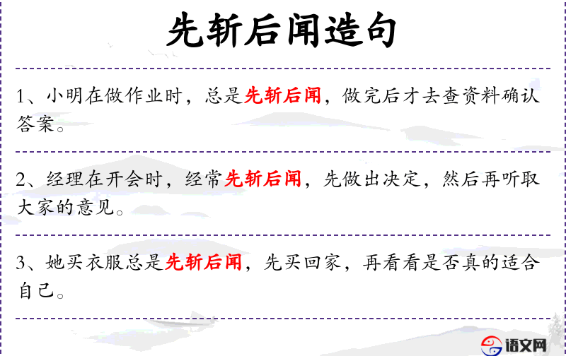 - 谓语:会先斩后闻,先采取措施,再去分析效果