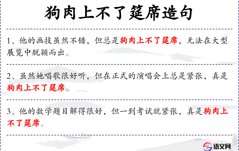 3. 【狗肉上不了筵席】 - 比喻素质太差,不能扶持上去。