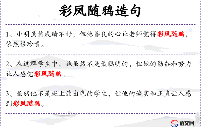 - 彩凤随鸦:这个成语源自**传统文化,用来形容有才能的人跟随无才能的人,但在现代语境中,更多用来形容内在美与外在美的对比。