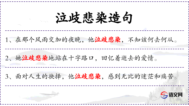 8. 【泣歧悲染】 泣歧:见歧路哭,因可以向南也可以向北;悲染:见染丝而悲伤,因可以染成黄色或黑色。形容悲叹人们易受外界世俗影响而迷失方向。