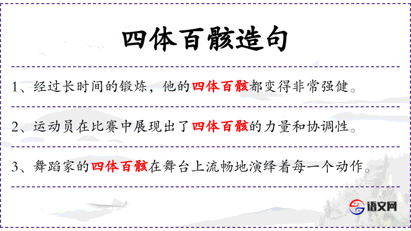 句子:“体操**员通过训练使四体百骸达到极致的灵活性和力量。”