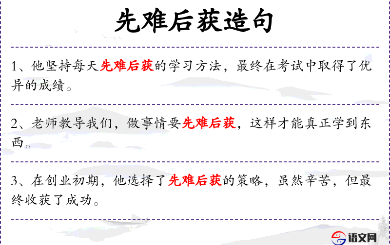 - 先难后获:成语,意思是先经历困难,然后获得成功或收获。