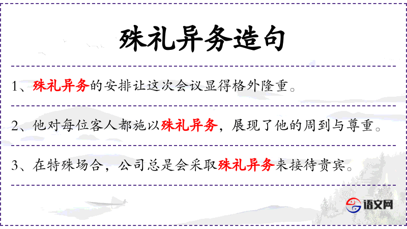 3. 【殊礼异务】 - 殖、异:不同;礼:礼俗;务:事情。指不同的礼俗和情况。