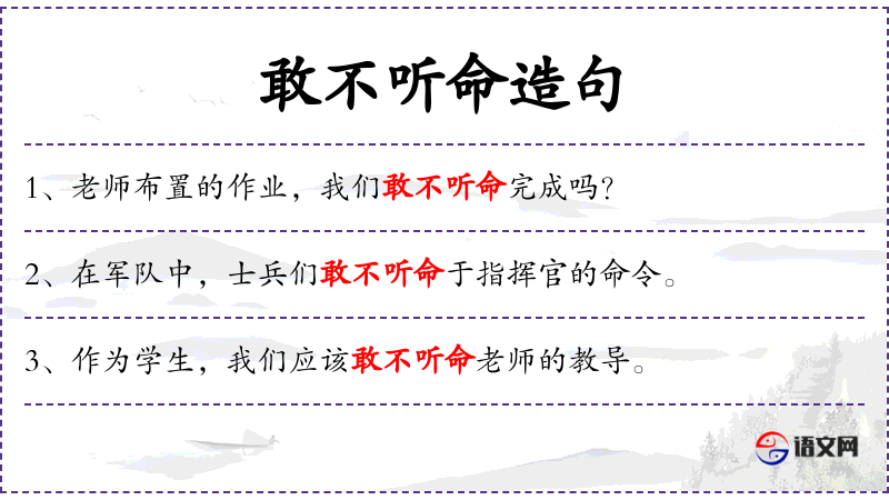 句子:“在军队中,士兵们敢不听命于指挥官的命令。”