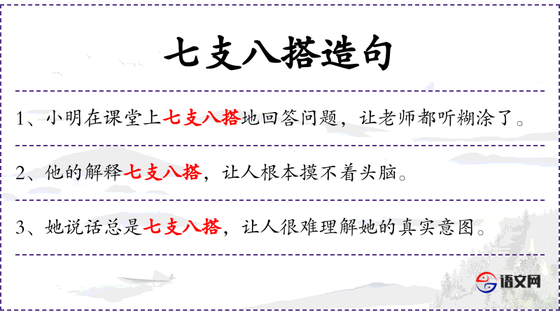 - 七支八搭:杂乱无章、支离破碎、东拼西凑