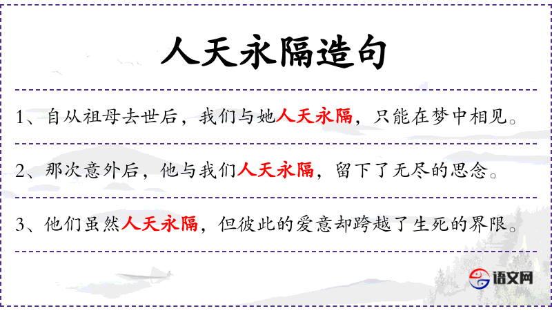- 人天永隔:比喻生死相隔,无法再相见