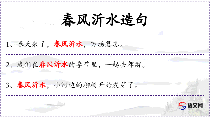 - 主语:“春风沂水的景色”,由名词短语构成,描述的是一种自然景观。