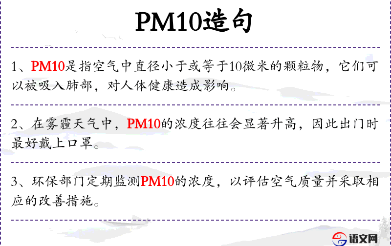 1. 【PM10】 - 可吸入颗粒物。