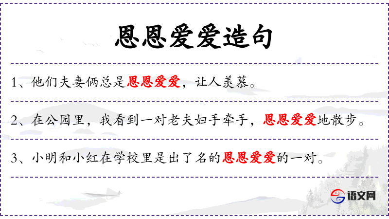 - 恩恩爱爱:形容夫妻或情侣之间感情深厚,相互关爱。