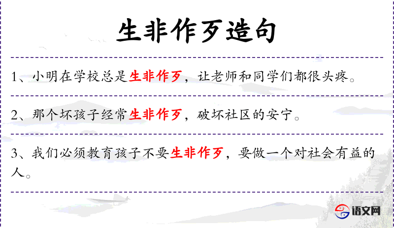 4. 【生非作歹】 - 非:不对;歹:坏。做种种坏事。