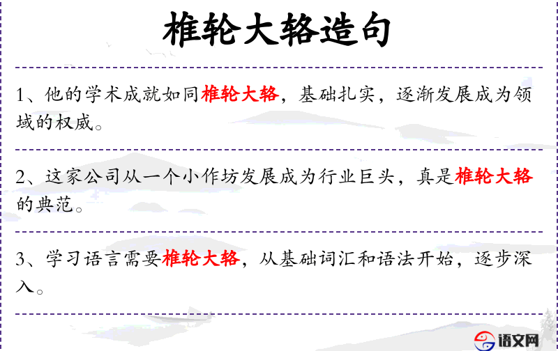 5. 【椎轮大辂】 - 比喻事物由简到繁,由粗到精,逐步完善。亦用以称创始者。