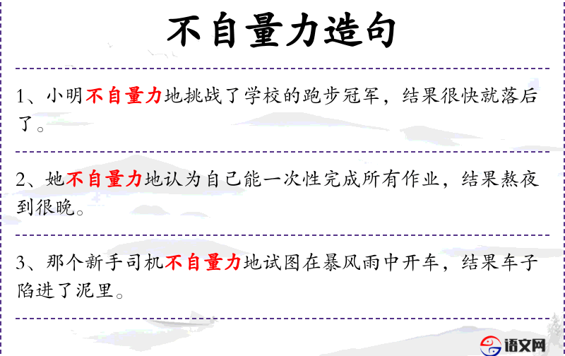 1. 【不自量力】 - 量:估量。自己不估量自己的能力。指过高地估计自己的实力。