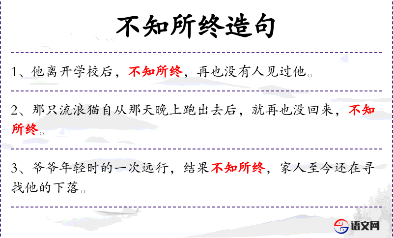 1. 【不知所终】 - 终:最后,结局。不知道结局或下落。