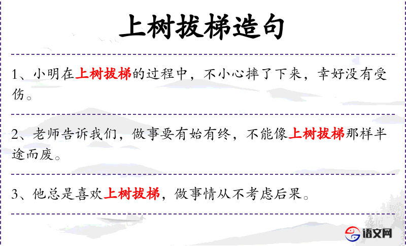 1. 【上树拔梯】 - 拔:抽掉。诱人上树,抽掉梯子。比喻引诱人上前而断绝他的退路。